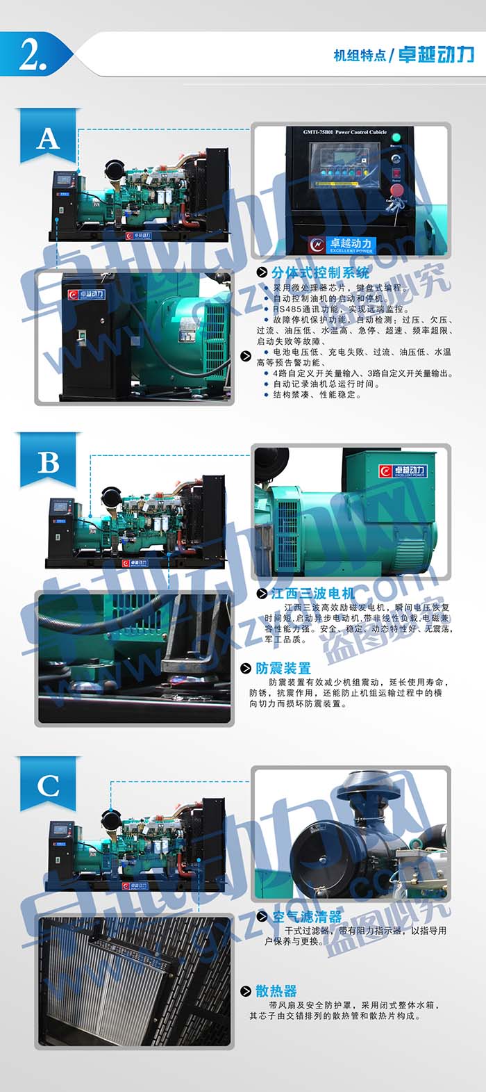 采用國(guó)內(nèi)先進(jìn)的柴油發(fā)電機(jī)組專用多功能智能控制模塊,具有自動(dòng),手動(dòng)啟動(dòng)控制(可選)、自動(dòng)保護(hù)功能、自動(dòng)保護(hù)功能、自動(dòng)市電/發(fā)電轉(zhuǎn)換、自動(dòng)并機(jī)及遠(yuǎn)程通訊和液晶顯示頻顯示各種參數(shù)等功能,有多種智能控制模塊供選擇。
